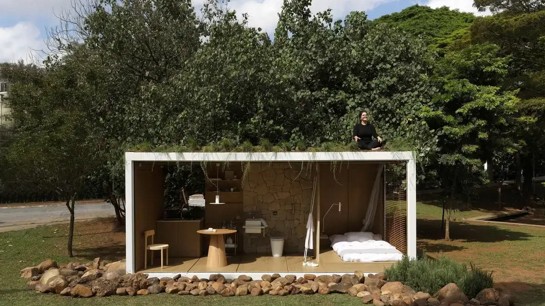 Com design escandinavo, o Estúdio Elo foi pensado para um morador, tendo como destaque o mobiliário planejado em madeira clara sustentável (padrão Grano, da Criare) que reveste todo o contêiner para que ele abrace o espaço e transmita a sensação de acolhimento e conforto necessário.