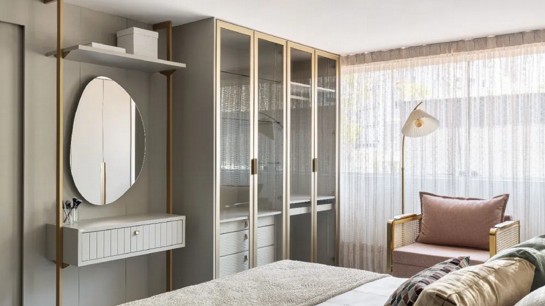 Diferentes formas de personalização ajudam a entregar um quarto perfeito para as preferências do casal.