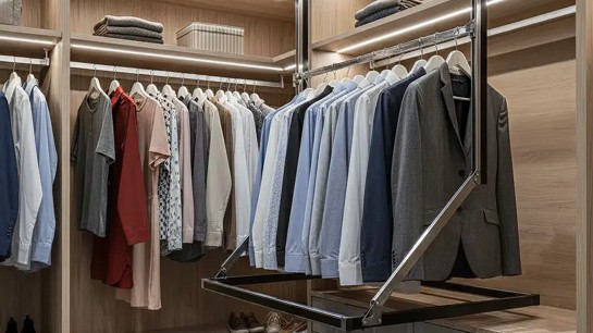 São muito utilizados em closets masculinos ou em projetos com grande volume de calças, contribuindo para melhor aproveitamento do espaço e para a conservação das roupas.